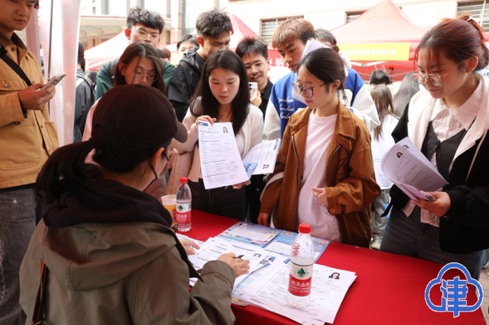 “同学,来了解下我们公司,世界500强”“我们招聘多名管培生,有个性化的培养方案”……记者在现场看到,企业负责招聘的工作人员纷纷亮出“王牌优势”。现场还有不少企业放出七险二金、绩效提成等福利标签,吸引应聘者前来投递简历。活动现场人头攒动,气氛热烈,同学们穿梭于各个展位之间,积极投递简历、主动了解用人单位情况。“从此次双选会情况来看,招聘人数最多的是国有企业,招聘企业数量最多的是民营企业,招聘最多的岗位是经管、机械制造类岗位,现场共收取学生简历1.1万余份。”天津商业大学就业指导中心相关负责人说。