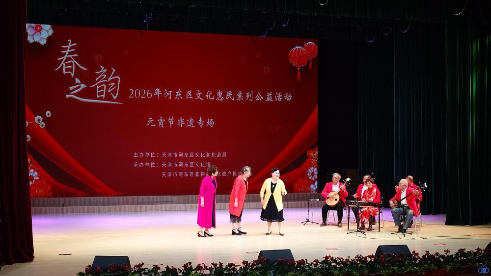 天津北方网讯:3月4日晚,“春之韵”2026年河东区文化惠民系列公益活动在河东区文化馆直沽剧场举办元宵节非遗专场演出,以非遗技艺为纽带,在元宵佳节之际,为观众送上节日祝福。